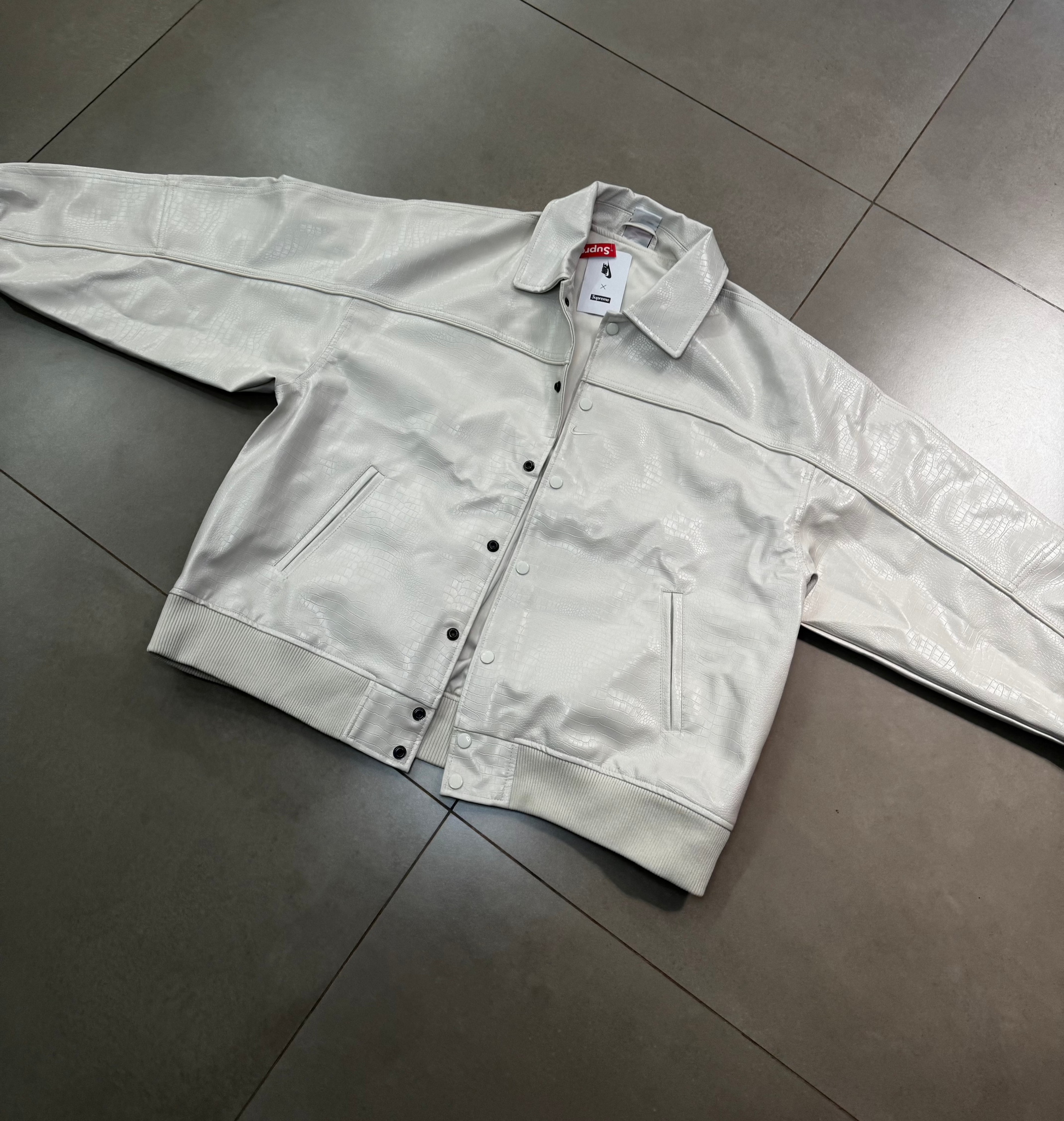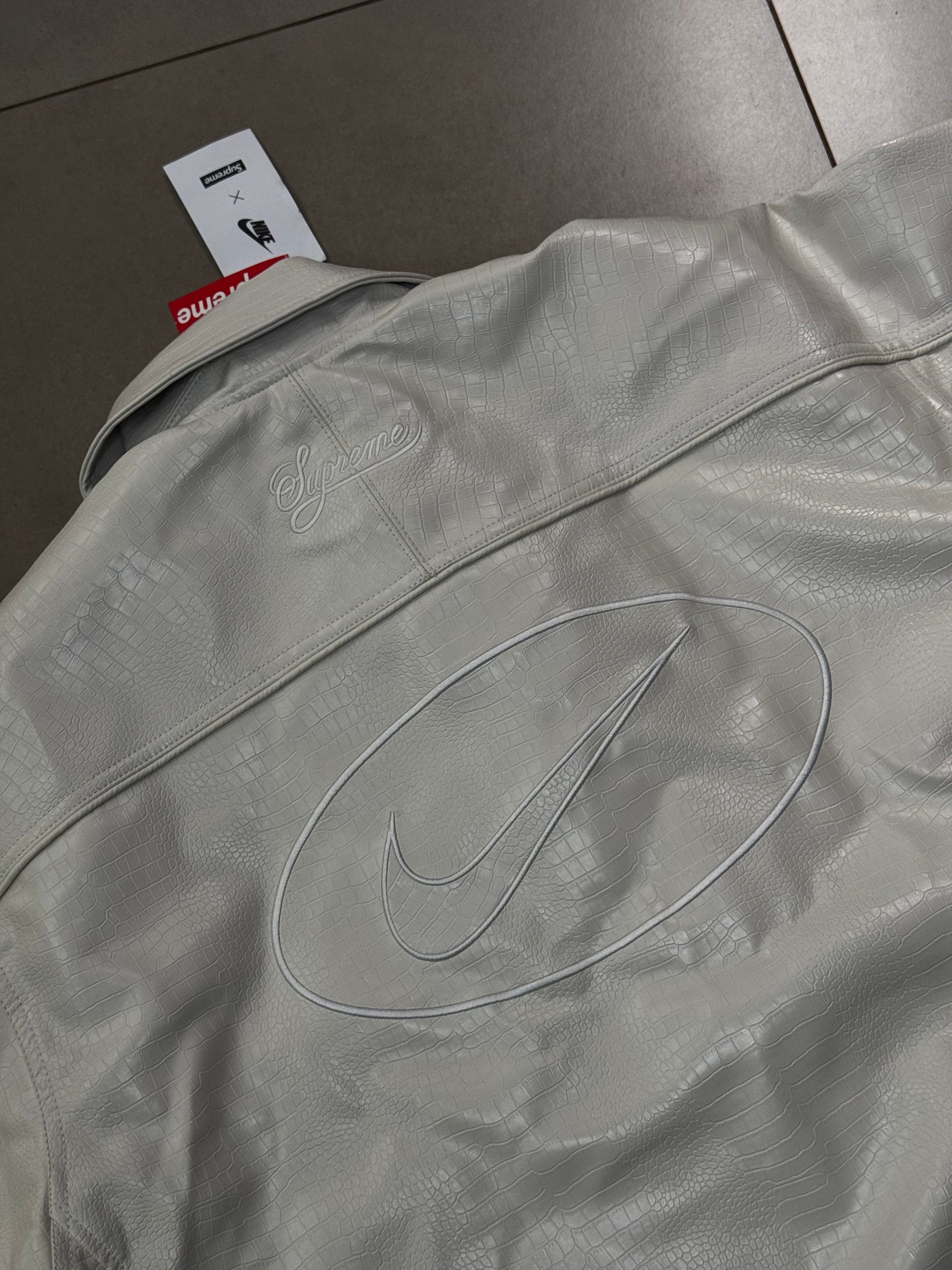 Supreme x Nike Jaqueta de Couro Varsity